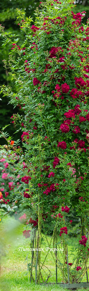 Растение: сильнорослое, высота штамба 180 см, длина побегов на штамбе достигает 180 см, диаметр куста 80 см, лист удлиненный, темно-зеленый, глянцевый.