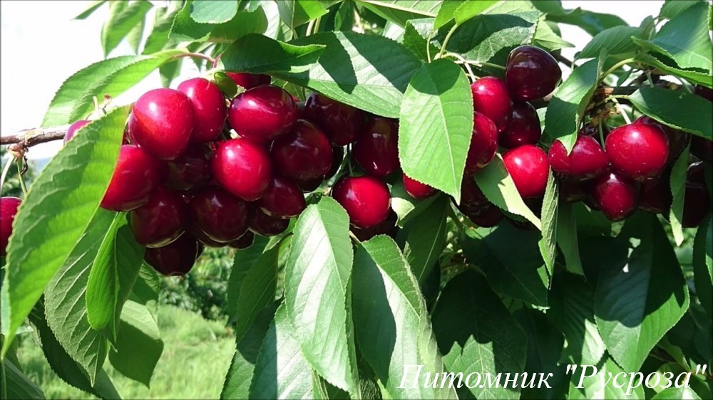 Ягода: очень крупная (15 - 20 г), сердцевидной формы, окрас тёмно‑малиново‑красный, при полном созревании почти бордовый, равномерный по всей поверхности. Кожица плотная, эластичная, не склонна к растрескиванию даже при высокой влажности.