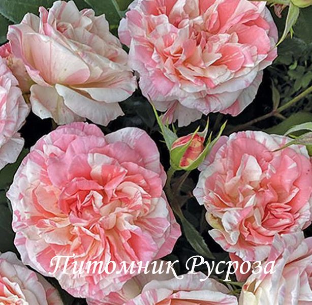 Цветок: кремово-белый с розовыми штрихами, пятнами и полосками, чашевидный, густомахровый, 70 - 90 лепестков в одном цветке, диаметр цветка 7 - 9 см, обладает насыщенным ароматом.