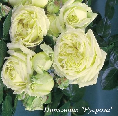 Цветок: зеленоватый с оттенком слоновой кости, чашевидный, густомахровый, 50 - 60 лепестков в одном цветке, диаметр цветка 10 - 12 см, обладает легким фруктовым ароматом.