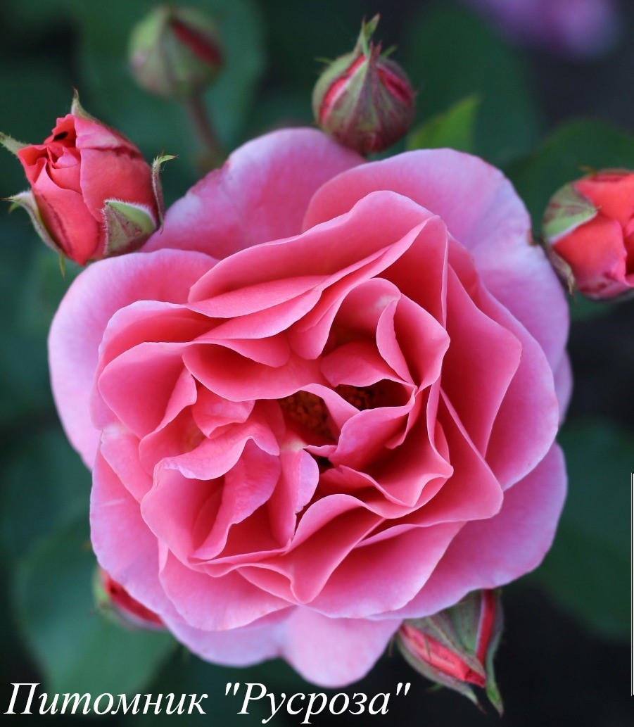 Бутон: темно-розовый с сиреневым оттенком, яйцевидный.