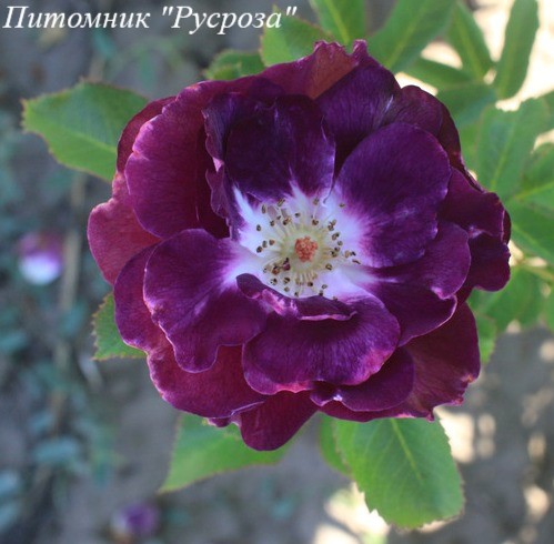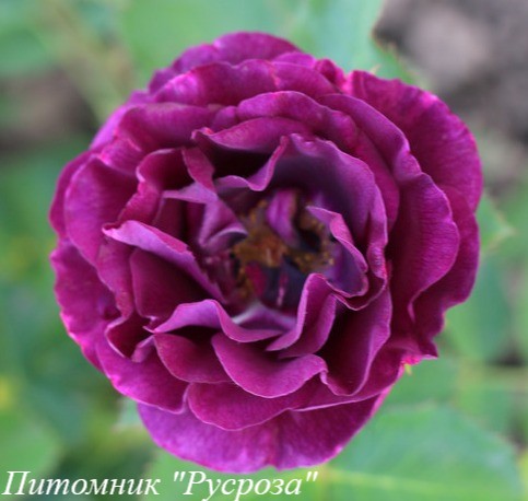 Цветок: сиренево-фиолетовый с красноватым оттенком, чашевидный с волнистым краем лепестка, густомахровый, 80 - 100 лепестков в одном цветке, диаметр цветка 7 - 10 см, обладает насыщенным цитрусовым ароматом, устойчив к дождю.