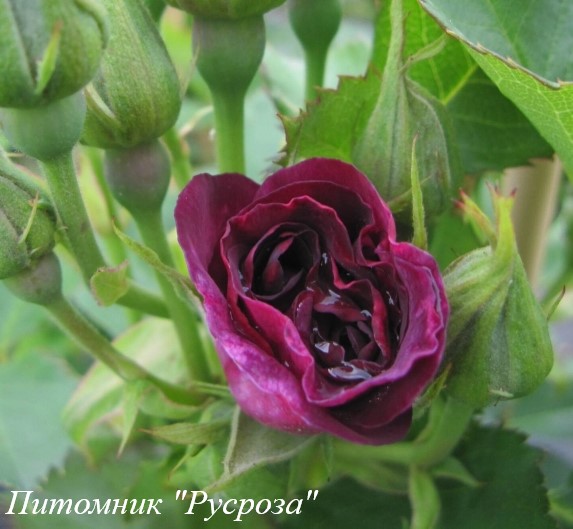Бутон: темно-розовый с сиреневым оттенком, яйцевидный.