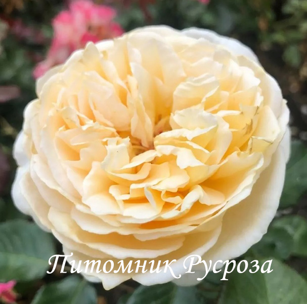 Цветок: нежно-абрикосовый с кремовыми внешними лепестками, при полном распускании становится бело-кремовым, розетковидный, густомахровый, 60 - 80 лепестков в одном цветке, диаметр цветка 7 - 10 см, обладает пряным ароматом, долго сохраняет форму, пригоден для срезки.