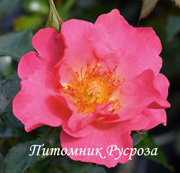 Цветок: ярко розовый с коралловым оттенком и золотисто-оранжевыми тычинками плоскочашевидный с волнистым краем лепестка, простой до полумахрового, 4 - 6 лепестков в одном цветке, диаметр цветка 4 - 10 см, обладает легким фруктовым ароматом, привлекательный для пчел и шмелей.