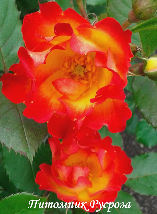 Бутон: желтый с вишнево-красным краем лепестков, яйцевидный.