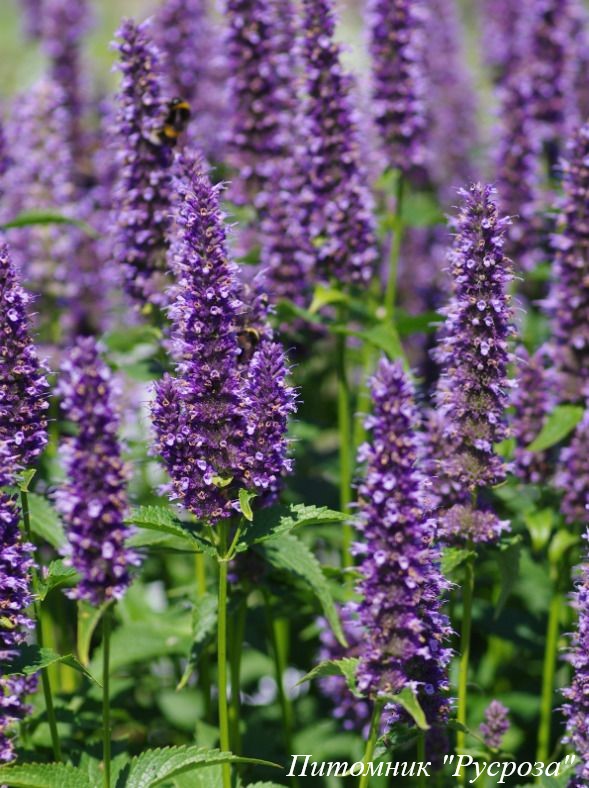Цветение: обильное, с июля, яркими, фиолетово-синими колосовидными соцветиями.
