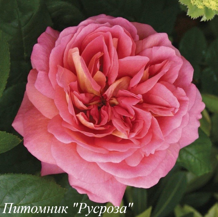 Цветок: лососево-розовый с коралловым оттенком и нежно желтой обратной стороной лепестка, розетковидный, густомахровый, 80 - 100 лепестков в одном цветке, диаметр цветка 9 - 12 см, обладает насыщенным фруктовым ароматом с пряными нотками, долго сохраняет форму, пригоден для срезки.