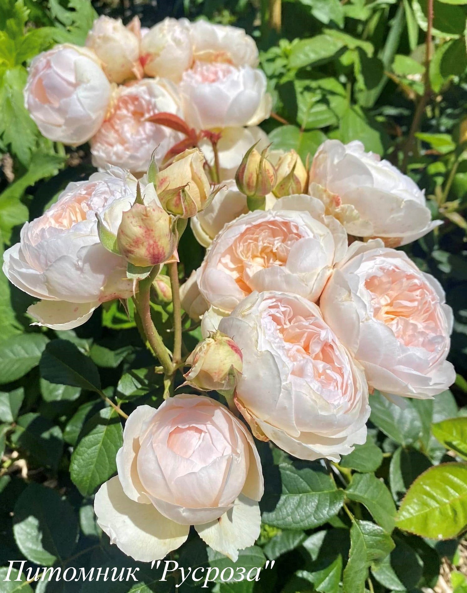 Цветок: бело-кремовый с нежно желтым оттенком, при полном распускании становится белым, шаровидный до розетковидного, густомахровый, 70 - 90 лепестков в одном цветке, диаметр цветка 7 - 9 см, обладает насыщенным фруктовым ароматом с нотками цитрусовых.