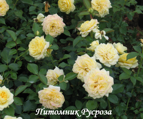 Цветок: нежно желтый с белой каймой по краю лепестка, розетковидный, густомахровый, 90 - 100 лепестков в одном цветке, диаметр цветка 10 - 12 см, обладает ароматом.