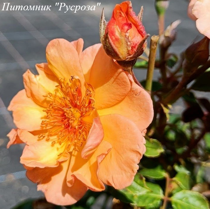 Цветок: абрикосово-оранжевый с медово-желтым основанием лепестка, плоскочашевидный, полумахровый, 9 - 16 лепестков в одном цветке, диаметр цветка 4 - 6 см, обладает легким ароматом, самоочищающийся, привлекательный для пчел и шмелей, долго сохраняет форму.