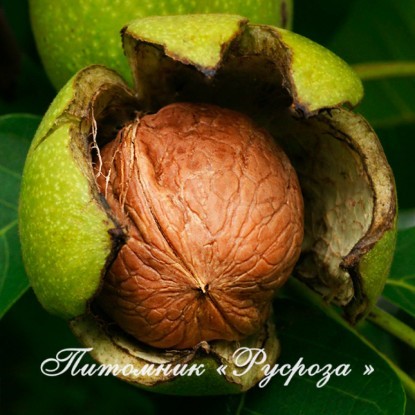 Плоды: крупные, массой 15 – 18 г, овальные, немного приплюснутые, слаборебристые, толщина скорлупы – 1 мм. Ядро жёлтое, легко вынимается.