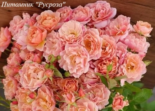 Цветок: пепельно-розовый антикварный с красновато-коралловым оттенком и карамельно-медовым центром, чашевидный до плоскочашевидного с волнистым краем лепестка, махровый, 17 - 30 лепестков в одном цветке, диаметр цветка 5 - 8 см, обладает легким ароматом, очень долго сохраняет форму, пригоден для срезки.