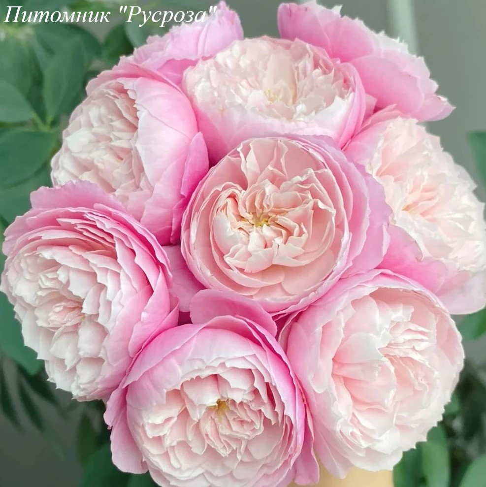 Цветок: бело-розовый до нежно розового с желтым оттенком, шаровидный до округло-чашевидного, махровый, 26 - 40 лепестков в одном цветке, диаметр цветка 8 - 10 см, обладает фруктовым ароматом с нотками дамаской розы и чая.