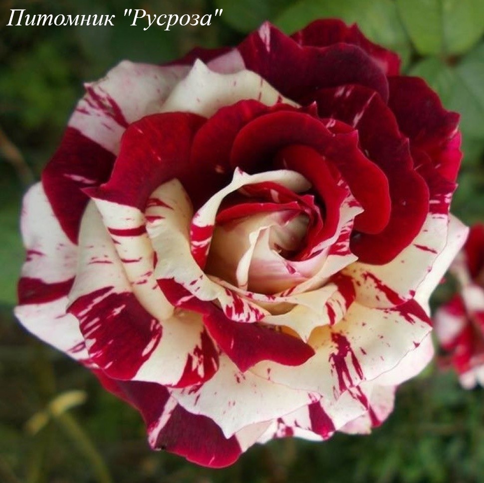 Цветок: кремово-белый с бордово-красными пятнами и полосками с фиолетово-розовым оттенком, чашевидный, с высоким центром, махровый, 17 - 30 лепестков в одном цветке, диаметр цветка 4 - 5 см, обладает очень легким ароматом, очень долго сохраняет форму, пригоден для срезки, устойчив к неблагоприятным погодным условиям (солнце, дождь, ветер).