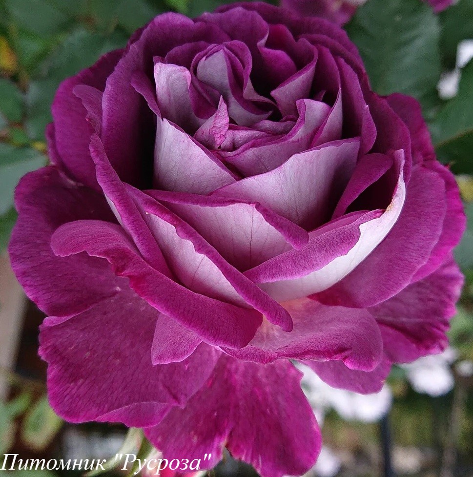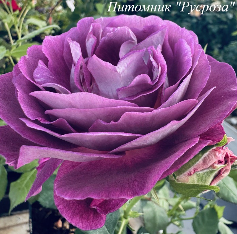 Цветок: сиренево-фиолетовый с бело-серебристой обратной стороной лепестка, чашевидный, махровый, 26 - 40 лепестков в одном цветке, диаметр цветка 8 - 10 см, обладает насыщенным ароматом, долго сохраняет форму, пригоден для срезки.