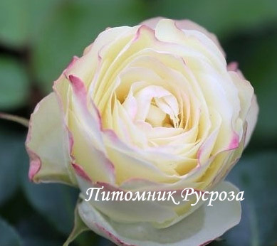 Цветок: белый с зелеными внешними лепестками, при полном распускании с розовым краем лепестка и розовыми пятнами на внешних лепестках, чашевидный, с высоким центром, махровый, 17 - 25 лепестков в одном цветке, диаметр цветка 6 - 8 см, обладает очень легким ароматом, долго сохраняет форму, пригоден для срезки.