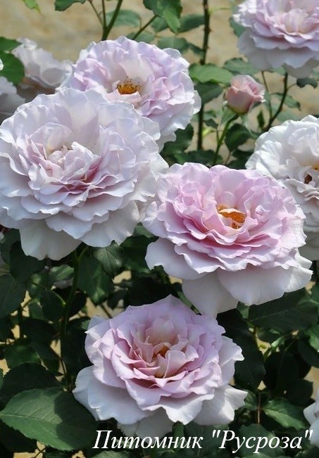 Цветок: нежно абрикосово-сиреневый, по мере распускания становится сливочно-кремовым, розетковидный с волнистым краем лепестка, махровый, 25 - 40 лепестков в одном цветке, диаметр цветка 10 - 12 см, обладает насыщенным ароматом, долго сохраняет форму, пригоден для срезки.