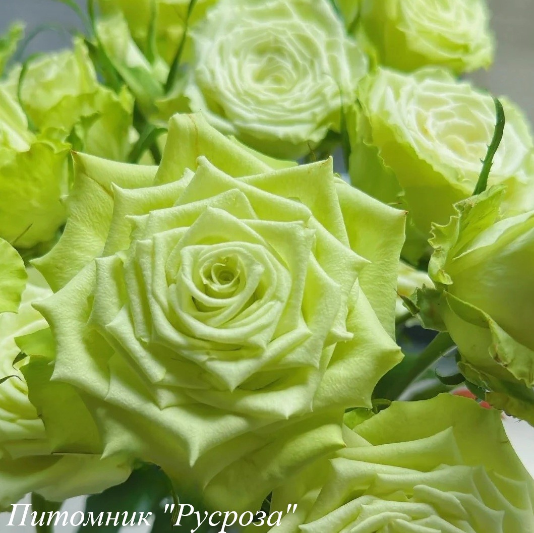 Цветок: кремово-зеленоватый с зелеными внешними лепестками, чашевидный, с высоким центром, махровый, 26 - 40 лепестков в одном цветке, диаметр цветка 6 - 8 см, обладает насыщенным ароматом, долго сохраняет форму, пригоден для срезки.