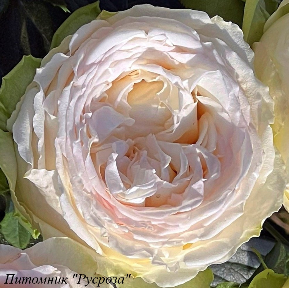 Цветок: белый с нежно кремово-абрикосовым центром и зеленоватыми внешними лепестками, чашевидный до розетковидного, густомахровый, 80 - 100 лепестков в одном цветке, диаметр цветка 9 - 11 см, обладает насыщенным медовым ароматом, долго сохраняет форму, пригоден для срезки.