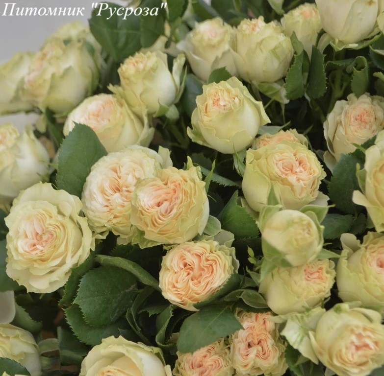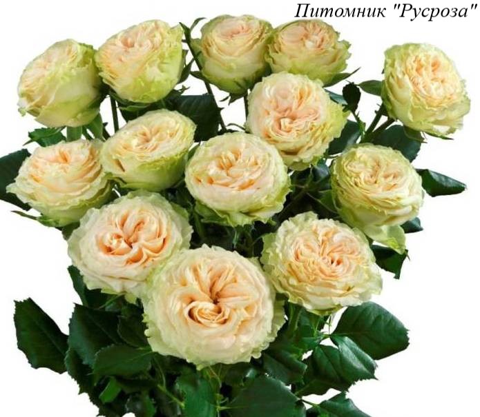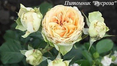 Цветок: кремовый с абрикосовым центром с зеленоватой обратной стороной лепестка, розетковидный до квадратного с волнистым краем лепестка, густомахровый, 90 - 120 лепестков в одном цветке, диаметр цветка 10 - 12 см, обладает легким ароматом, долго сохраняет форму, пригоден для срезки.
